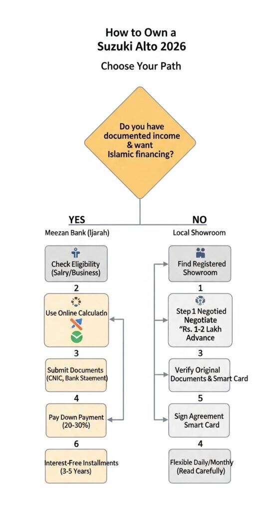 If you are looking for Suzuki Alto on installment from Meezan Bank 2026, the process is very transparent. You don’t have to worry about hidden charges that usually hurt your budget later.